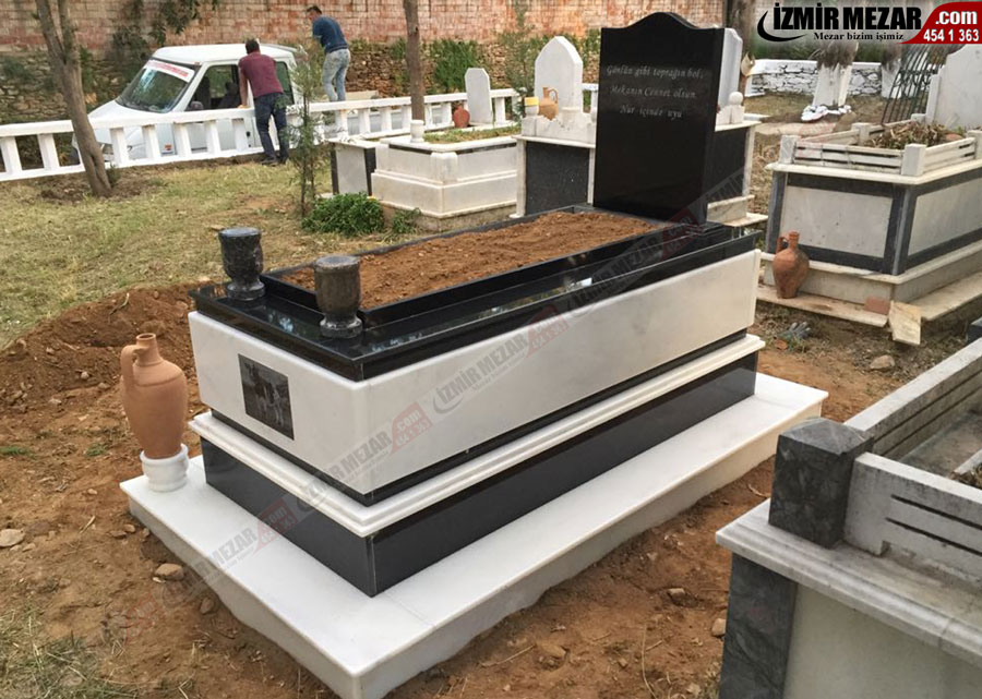 Tüm mezar modellerimiz fabrikada hazırlanarak yerine kurulumu gerçekleştirilir. Kesim, yapıştırma, zımpara, cila gibi işlemleri kesinlikle mezar yerinde yapmayız.